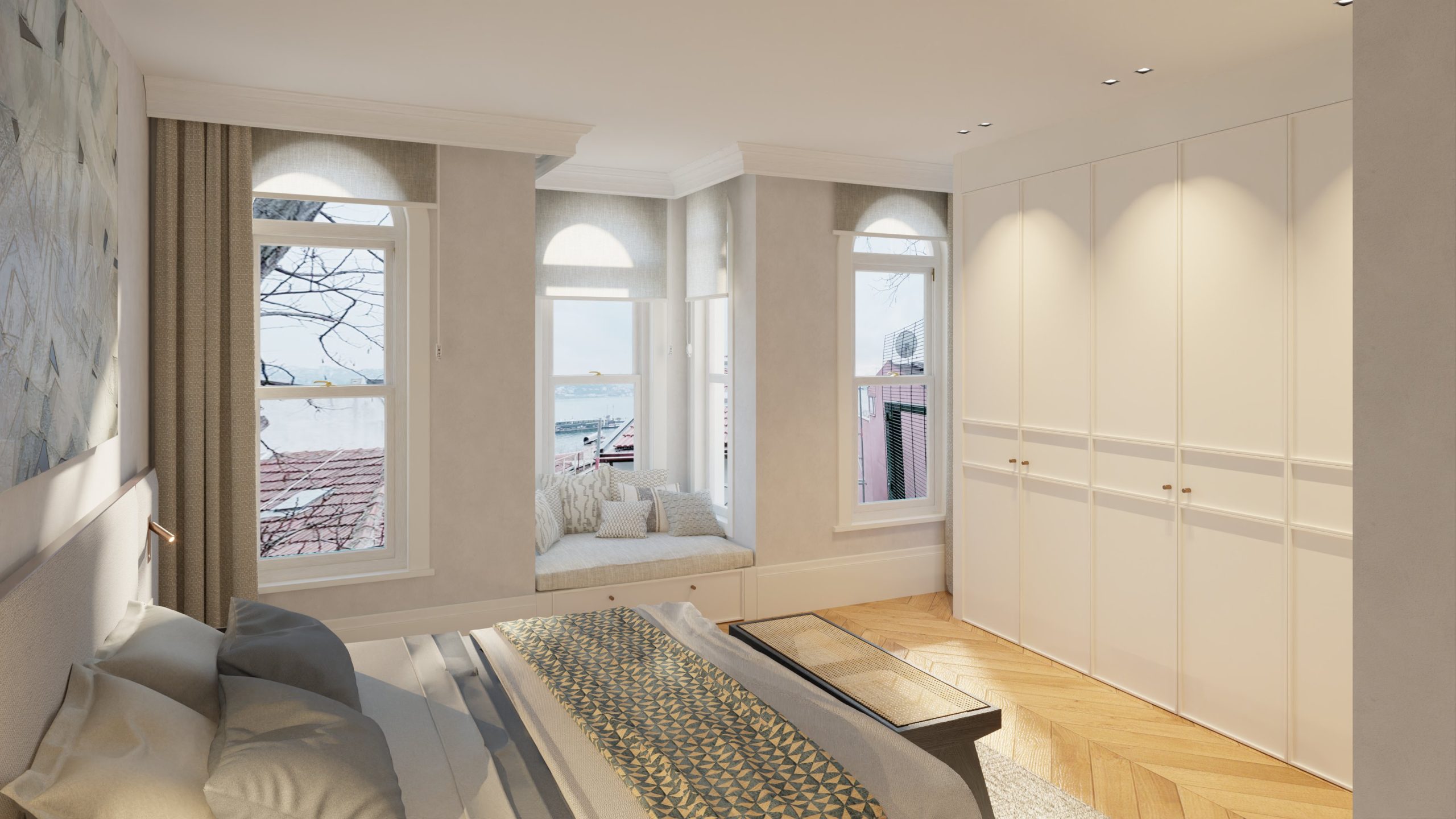 Kuruçeşme evi, yan yana dizilmiş ahşap kaplamalı eski İstanbul evlerinin komşusu olduğu dar bir sokakta yer alıyor. 6 katlı olan bu ev, 2 oturma odası, bir ana yatak odası, 4 yatak odası ve bir çatı katı çalışma odasından oluşuyor. Tek ailelik olarak kullanılan ev, şık Paris tarzı süslemeleri ve macar parkeleriyle geçmiş zamanlardan bir izlenim uyandırıyor; ancak gizli klima sistemleri ve akıllı ev teknolojileri gibi modern özellikleriyle son derece çağdaş bir yaşam alanı sunuyor.